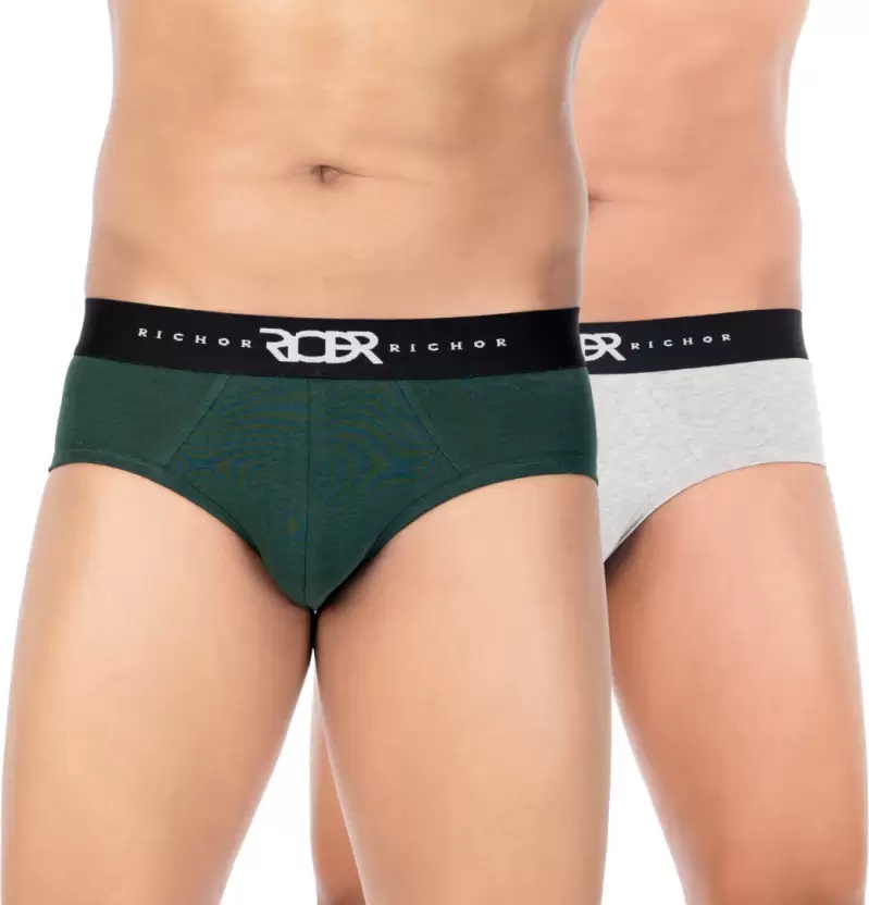 RRICHOR Men’s Deo-Soft Antimicrobial Stretchable Cotton Brief-Pack of 2 – Grey/Light Grey