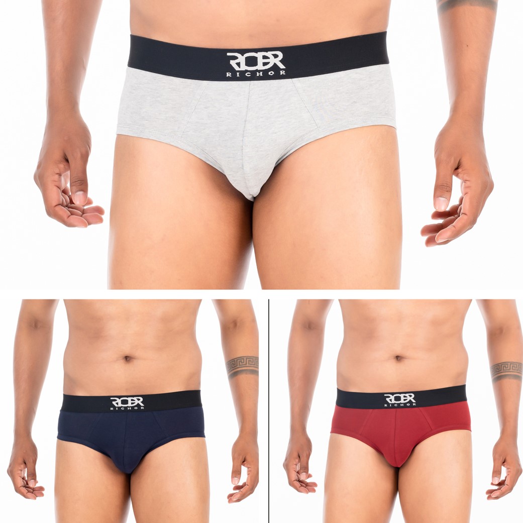 Men’s Deo-soft Cotton Brief-Pack of 3- Dark Blue Light Grey Red