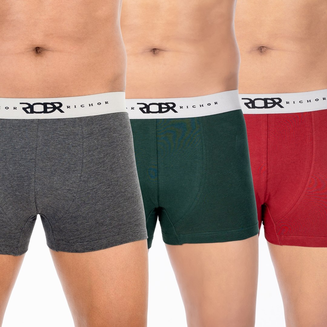 Men’s Deo-soft Cotton Solid Trunk Pack of 3 Grey Green Red