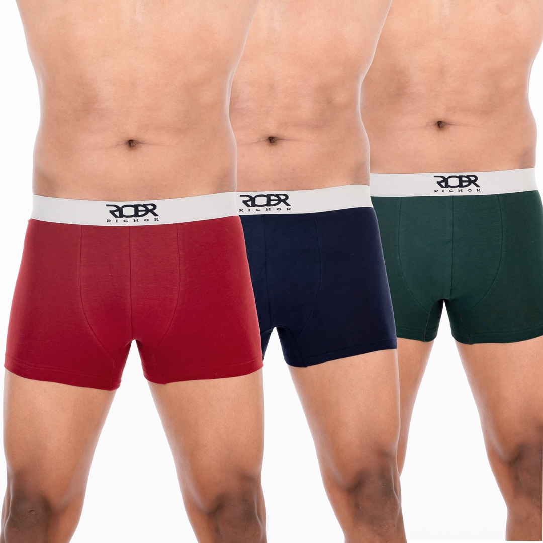 Men’s Deo-soft Cotton Solid Trunk Pack of 3 Red Dark Blue Green