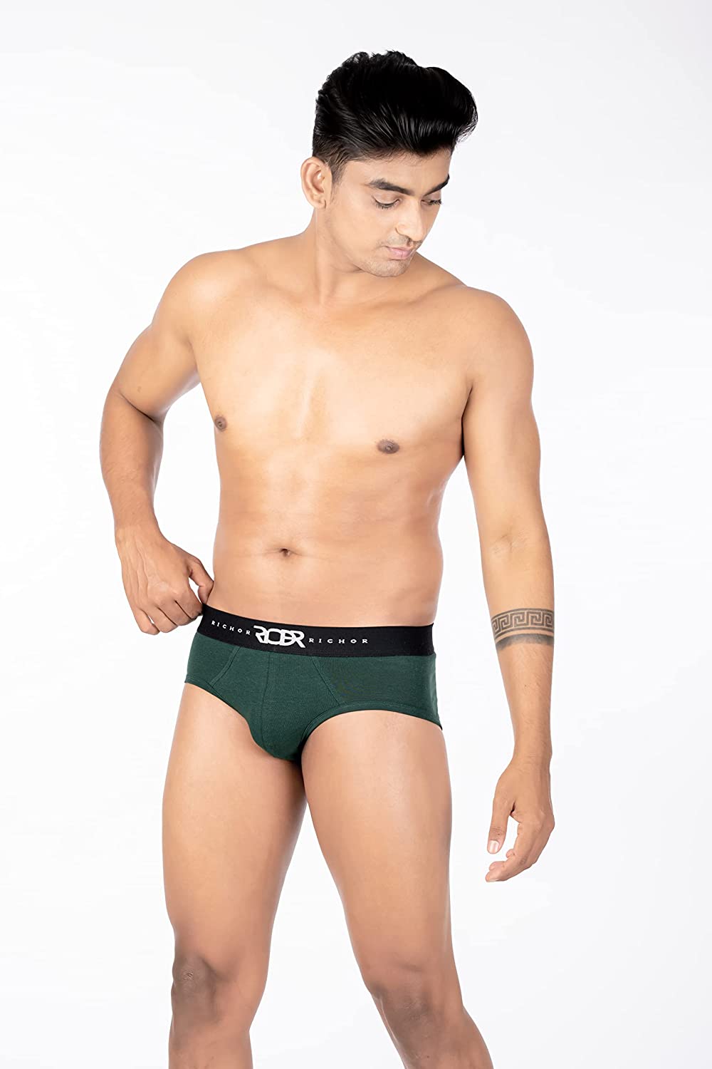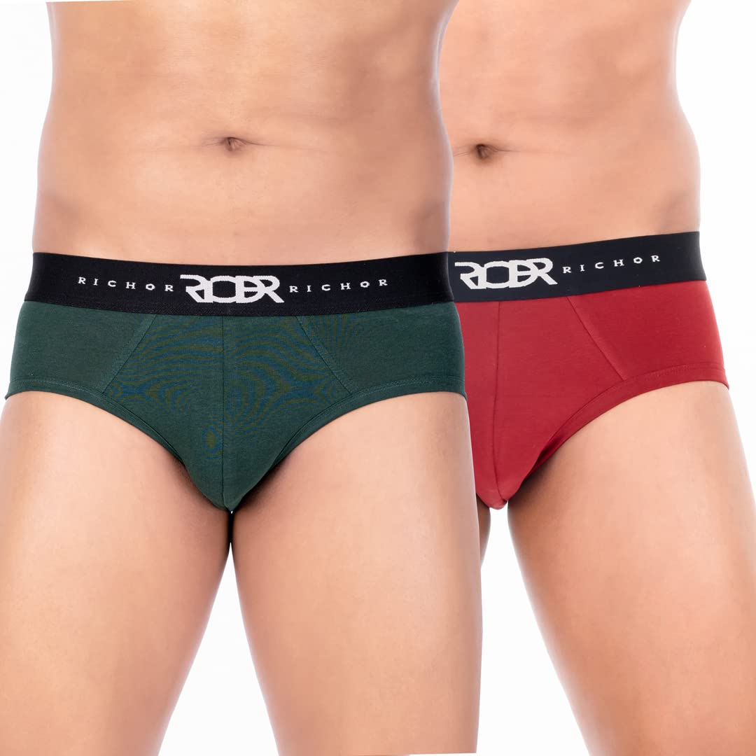 RICHOR Men’s Deo-Soft Antimicrobial Stretchable Cotton Brief-Pack of 2 -Green/Red