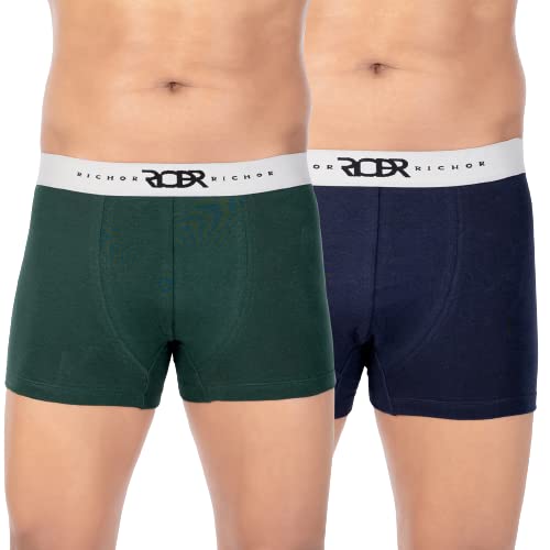 RICHOR Men’s Deo-Soft Antimicrobial Stretchable Cotton Trunk- Pack of 2 – Green/Blue