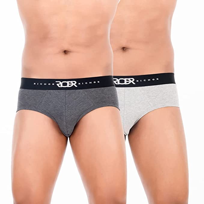 RRICHOR Men’s Deo-Soft Antimicrobial Stretchable Cotton Brief-Pack of 2 – Grey/Light Grey